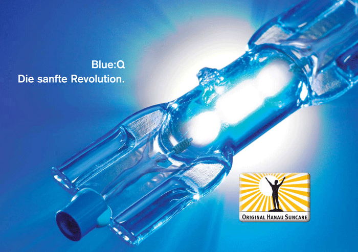 Řešením je použití zářičů Blue:Q od firmy Heraeus. Tyto zářiče jsou vyrobeny ze speciálního modrého křemenného skla, díky kterému je obsah krátkovlnného UV spektra odfiltrován a naopak dosaženo vyššího podílu dlouhovlnného UV záření ve srovnání s dříve používanými zářiči. Oproti standardním zářičům mají zářiče sice vyšší cenu, ale zejména díky vyšší životnosti se úprava solárií výše popsaným způsobem stává rentabilní až při páté výměně (ca 4000-5000 hodin).